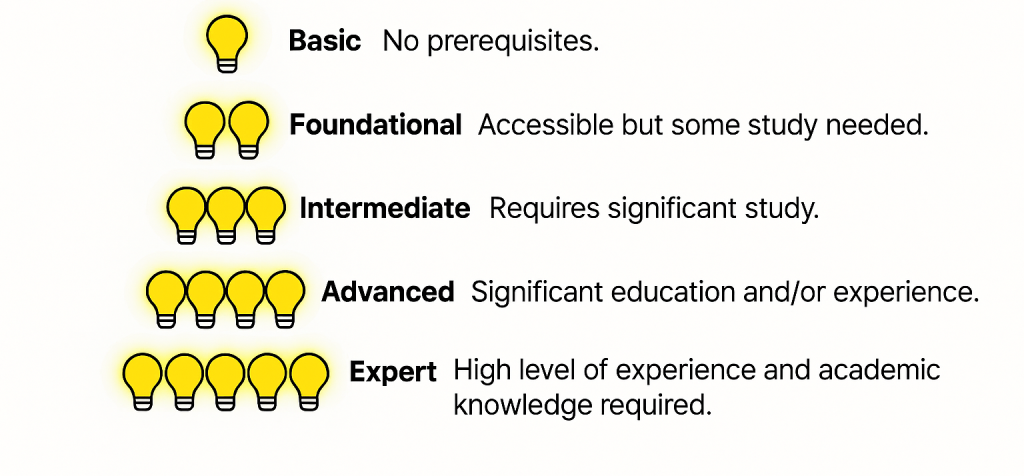 Each designation is assigned a difficulty level from Basic (💡) to Expert (💡💡💡💡💡). But this isn’t just about study hours or exam formats. It’s about intentional design — what the credential is meant to do for your career.